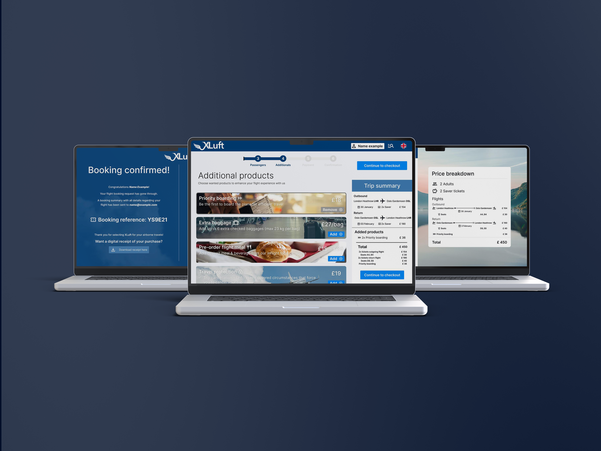 Xluft er et konseptuelt prosjekt som tar utgangspunkt i én sentral observasjon: flybooking oppleves ofte som unødvendig komplisert, stressende og preget av informasjonsstøy – spesielt når brukeren må ta mange valg på kort tid.